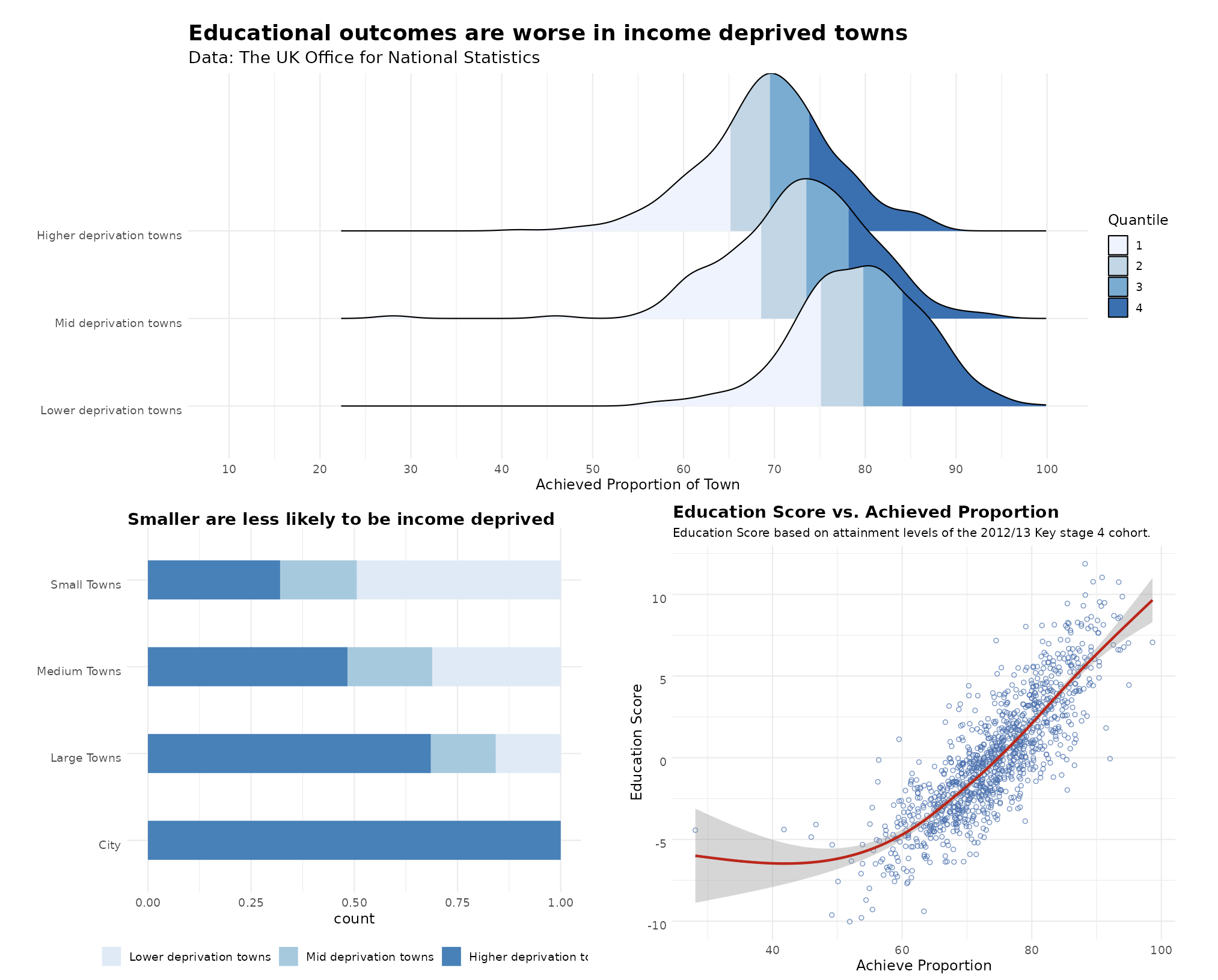 Why do UK pupils in small towns had better educational attainment than in larger cities?